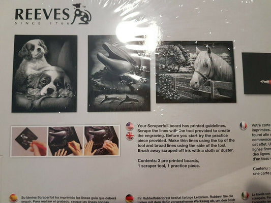 REEVES SCRAPERFOIL SILVER Gravure Argentee -Dolphin, Dog, Horse PPSFS7 8+